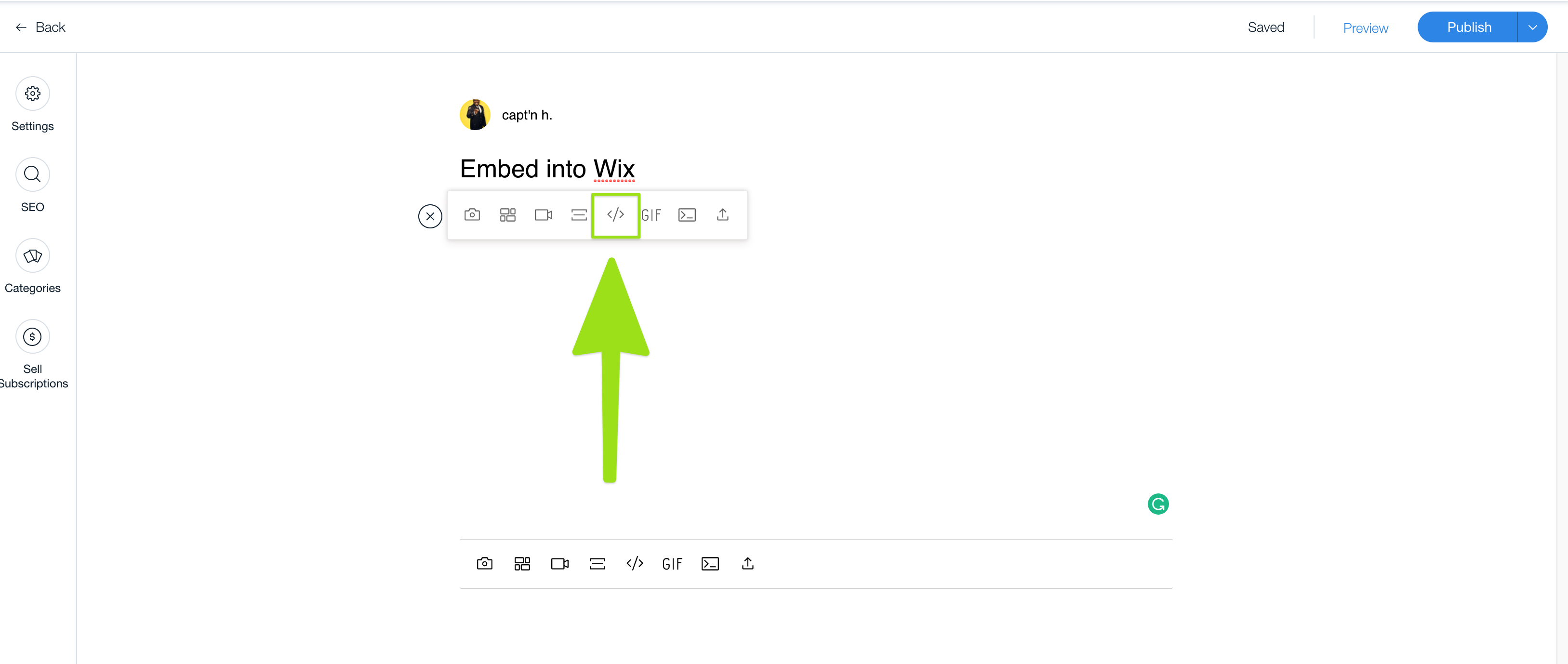 1. Log into your Wix account and create a new post or edit your current post.