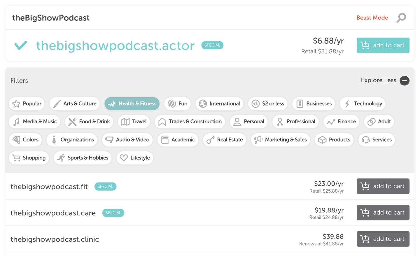 When it comes to choosing a domain name extension -- such as .com or .net – your options might be limited, depending on how many other people have already registered similar domains. However, where possible, opt for a common domain extension, such as .com, but if that's not available a lot of podcasters are putting their websites on .fm or .show extensions.